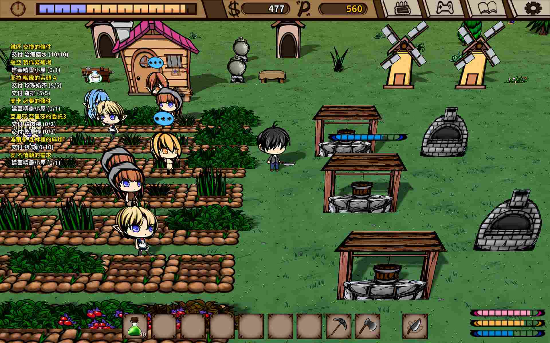 搜集物资、规划农地、搭建围篱、饲养家畜,白天辛勤的工作。